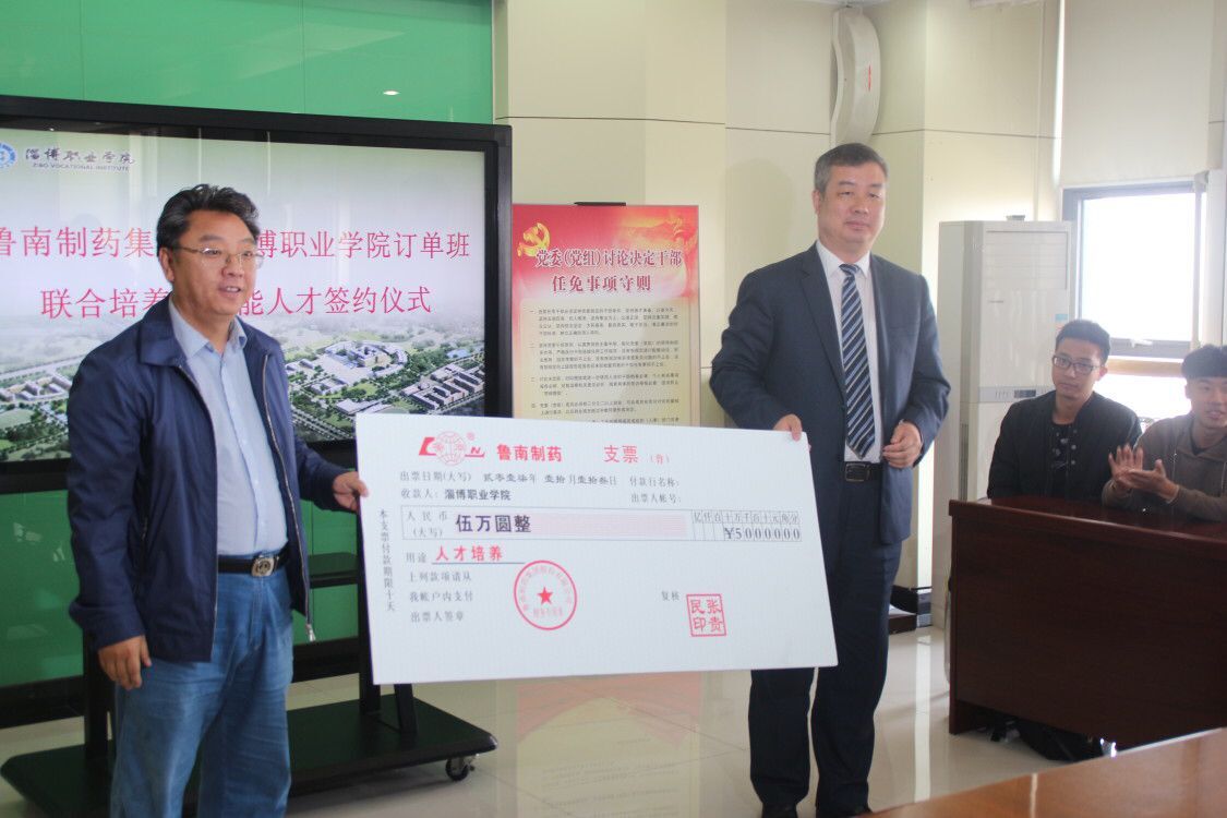 本站讯(通讯员 王晓莉)10月13日上午,我院与鲁南制药集团校企合作签约暨订单班开班仪式在北校区举行。学院党委副书记、院长杨百梅,副院长曾照香,校企合作与就业指导处及工商管理学院负责人,鲁南制药集团副总经理李宝杰、劳动人事部部长周冰、招聘经理刘强等领导出席签约仪式。仪式由学院副院长曾照香主持。 仪式上,李宝杰指出,近年来,淄博职业学院与鲁南制药集团不断加深校企合作,先后有三百余名优秀毕业生在该企业供职,为企业发展做出了重要贡献,成为学校与企业深入合作的桥梁和纽带。希望学院方面能输送更多优质人才,增强企业竞争力,实现校企共赢。 杨百梅代表学院致辞并对学院与鲁南制药集团的良好合作寄予了美好期望。她指出,学院与鲁南制药集团保持着良好的合作基础,双方对于订单班的成立给予高度重视。她强调,订单班的人才培养方案、目标、体系和设计,要依据企业岗位设置要求和人才需求动向,有针对性地培养人才,注重学生理论知识和实践技能的结合,符合企业员工职业素质和专业素养要求;要通过学院教师与企业教师共同授课、学校学习和企业轮岗实习相结合的教学模式,共同培养适应性强、就业率高、就业稳定性好的专业性人才。并希望以此为契机,实现招生与招工同步、教学与生产同步、实习与就业联体,在人才市场需求、人才规格、知识技能结构、课程设置、教学内容和成绩评定等方面进一步加深探索。 校企双方共同签署了合作协议,并向订单班学生代表颁发助学金,鼓励他们要具有吃苦耐劳的精神和创新意识,要根据“学生和学员”的双重身份和双重要求,不断丰富知识体系,提高个人竞争力。 签约仪式结束后,李宝杰一行在院领导和相关职能处室负责人的陪同下参观了三个校区及订单班教室。 据悉,鲁南制药集团是国家创新型企业、国家火炬计划重点高新技术企业,拥有国家级企业技术中心等多个高位研发平台,和国内外100多家高校及科研院所建立了技术合作,企业技术中心创新能力居全国医药行业前列。