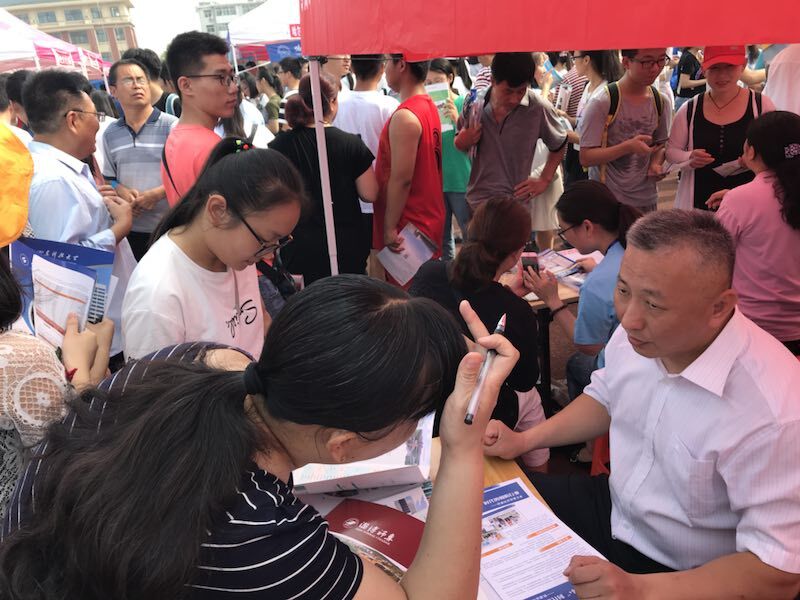 (通讯员 王晓莉)进入6月份,工商管理学院选派20余名熟悉招生宣传工作、有热情、懂专业、责任心强、沟通能力强的教师奔赴全省十七地市、30多个县市区,进入50多所中学进行招生宣传、志愿填报指导服务,通过四大举措,面对面为考生和家长答疑解惑,力争招生宣传工作取得更大突破。 专业教师出力 面对面解答 在招生宣传人员的选派上,工商管理学院除了安排经验丰富、吃苦耐劳的学生科工作人员以外,还安排各专业教师上阵。他们利用自身的专业优势、育人经验,直接与考生家长和考生面对面,为每一个来咨询的学生和家长,详细解答2018年的招生政策、科研实力、人才培养质量、发展前景等凝聚人心、化解问题,取得了较好的宣传效果。胡甜雨老师是一位新老师,在青岛城阳招生宣传现场,她耐心细致的解答赢得了学生和家长的好评。 优秀学子回访 发挥榜样力量 为使招生宣传工作更具实效性和针对性,工商管理学院开展优秀学子回访母校的活动,鼓励他们回到自己的母校,向自己的学弟学妹们介绍淄职的美、淄职的好。优秀学生们用家乡的语言和考生及家长沟通交流,鼓励学生报考。他们分享了在校期间的社团活动、专业学习、第二课堂、实习实训等大学生活,用个人的现身说法,消除了学弟学妹们的担忧和顾虑。